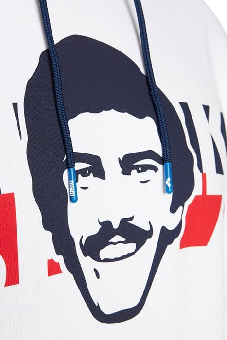 M MS HOODED SWEAT WHITE NAVY RED
