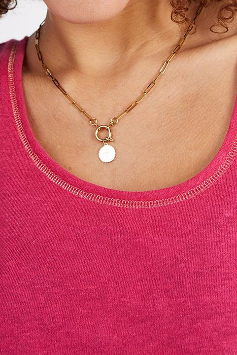 Women’S Magenta Pink Vest Top Wide Round Neck, Sleeveless 50% Cotton 50% Linen Blend Knit, Gold Thread Stitching On Neckline And Shoulders