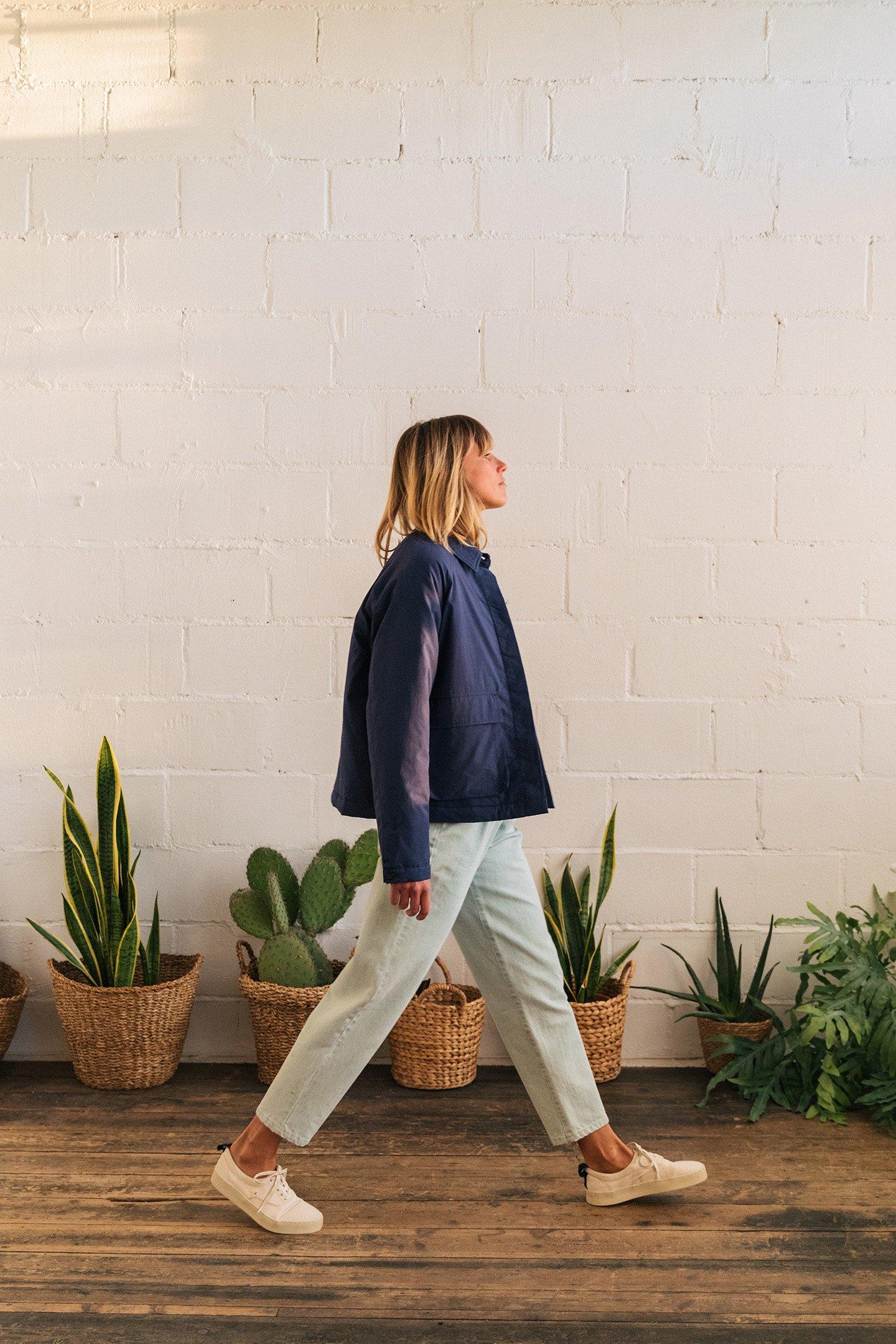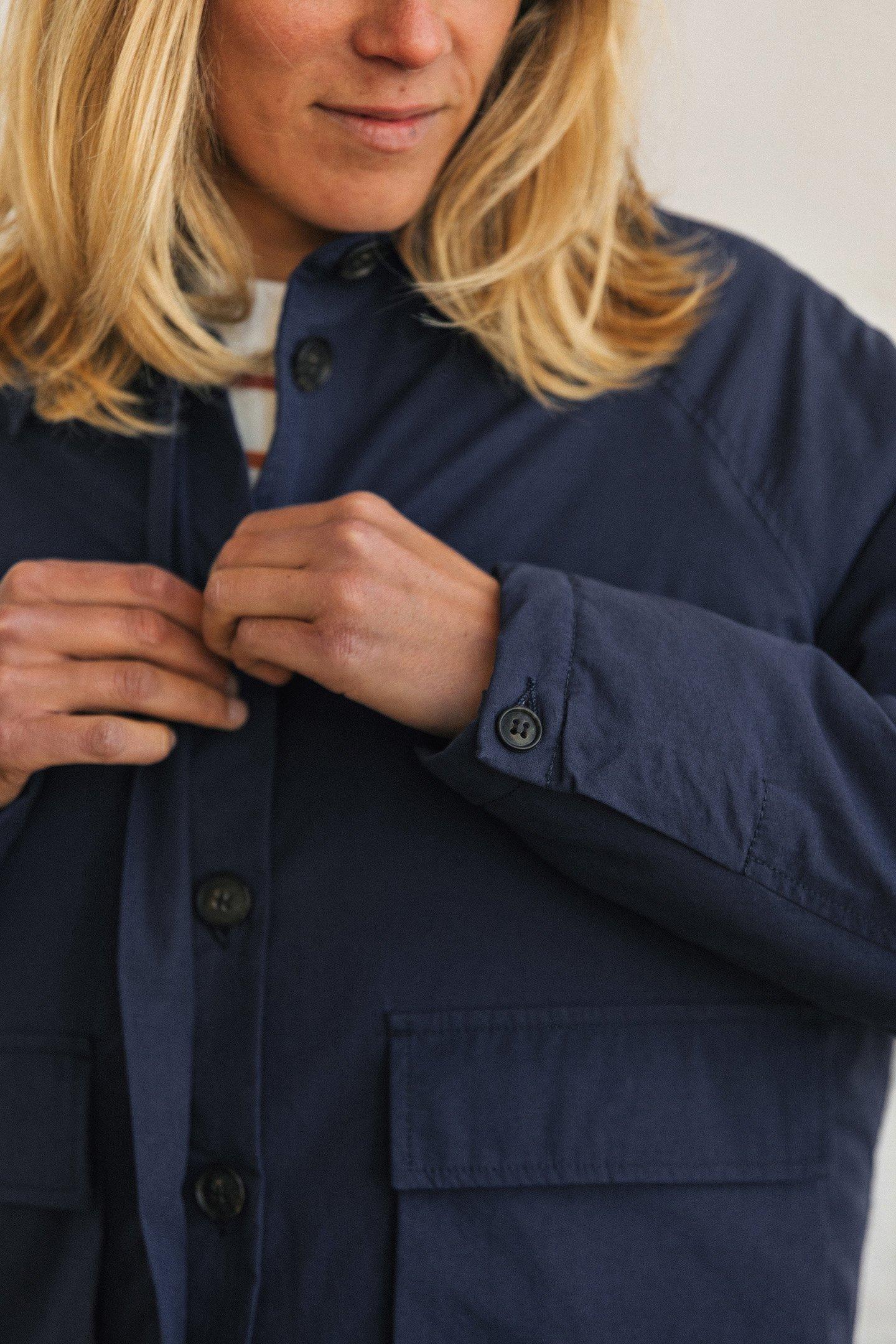A Soft And Forgiving Poplin Fabric Is Paired With Sustainable Urea Buttons And Lightweight Padding, To Create This Beautiful Collared Jacket. It Has Raglan Sleeves And Two Big Front Pockets.