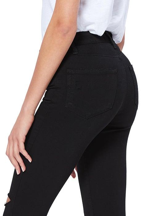 Our highest rise cut rebels with double knee destruction and a sleek jet-black wash. One of our plaid shirts and your best black kicks are necessary with these super soft TRANSCEND ankle jeans.