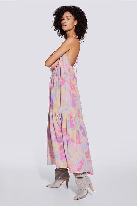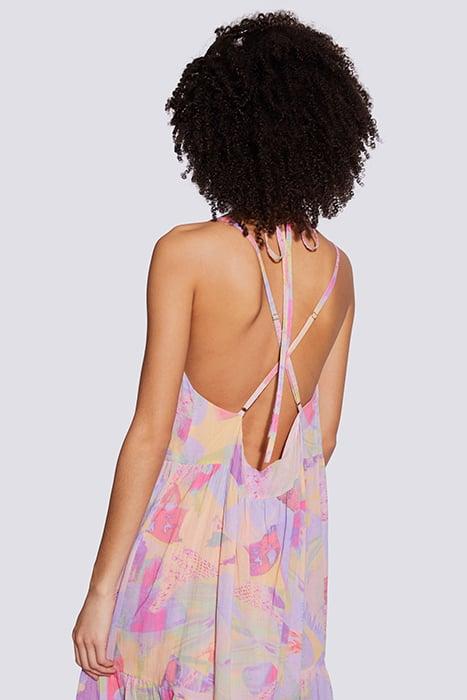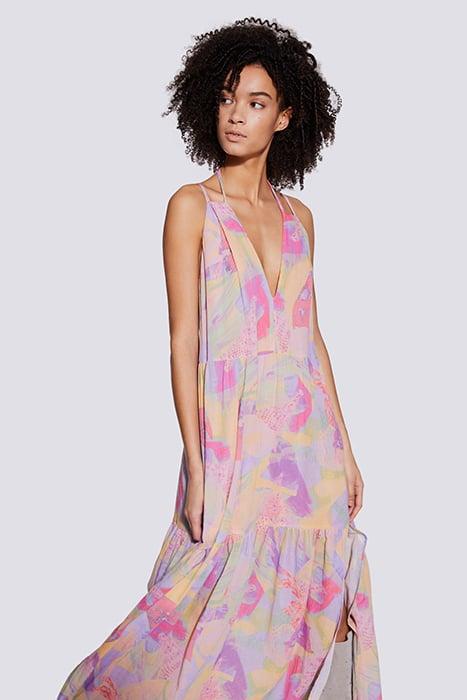 • Wm33Mauge-Bla72#• Light Long Dress#• V#Déclété V#• Fine Straps#• Bare Back#• Vintage Print#• 100% Cotton#• Made In China