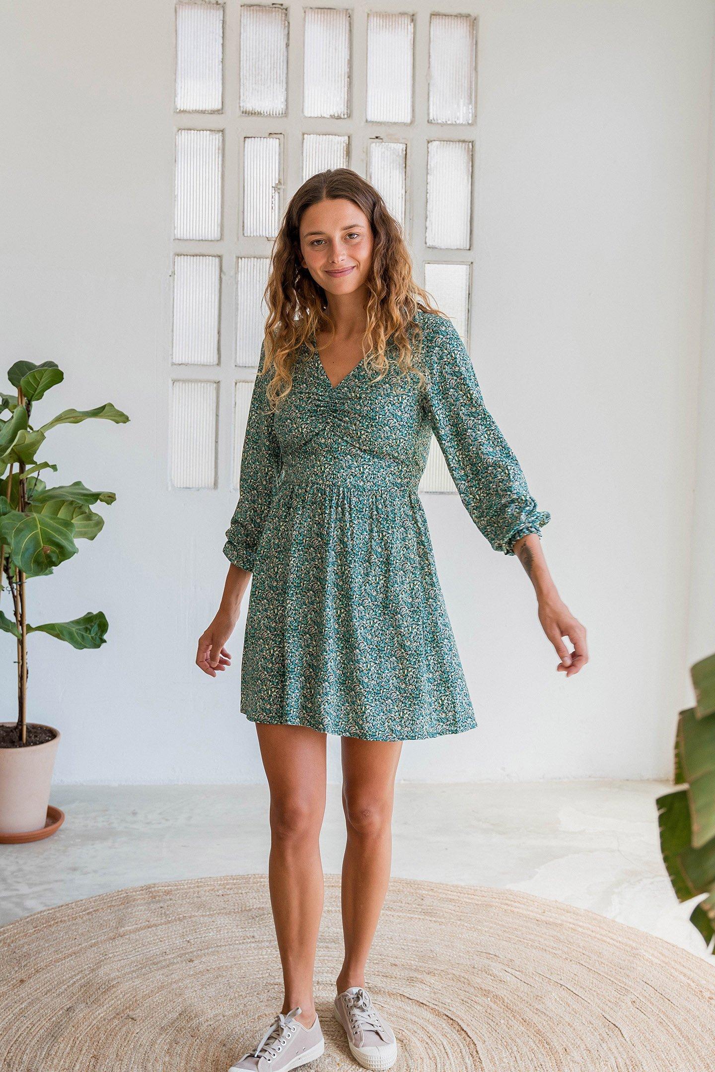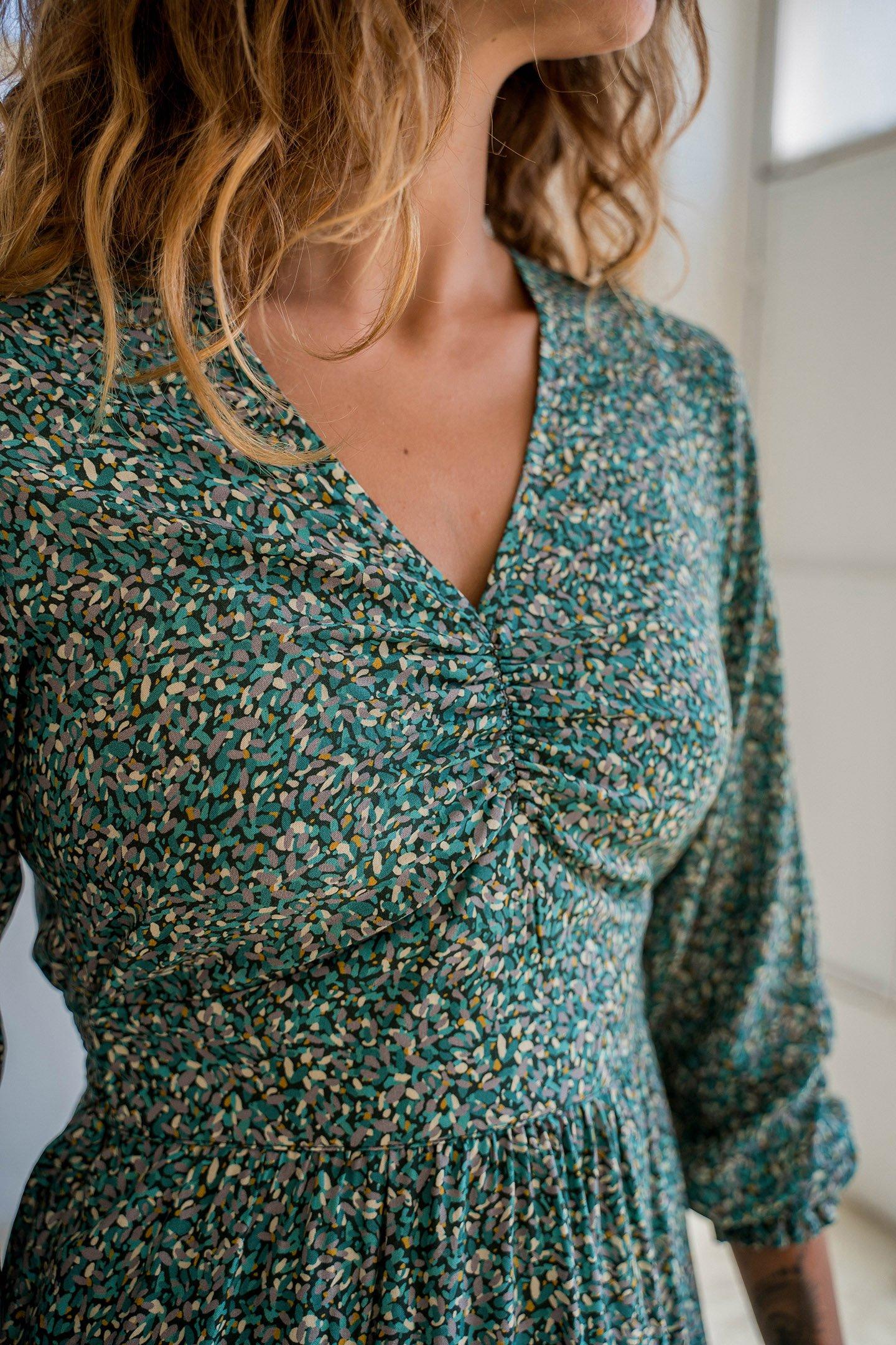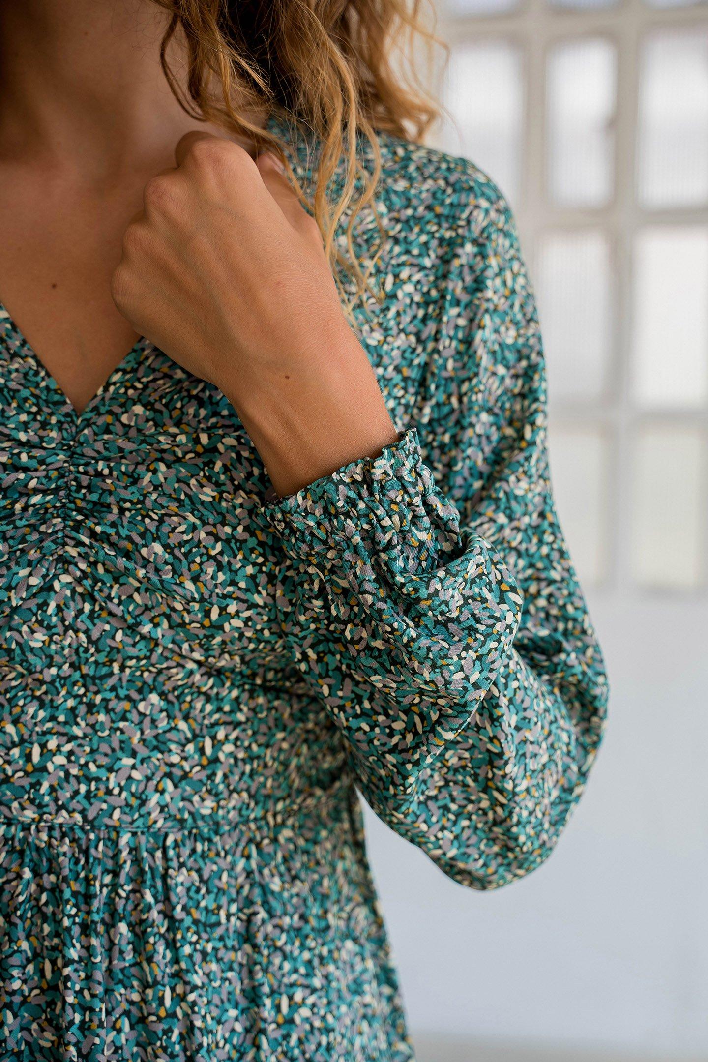 Floral Vintage Glamour Is What The Meemu Is All About. Subtly Gathered Areas Of Fabric Combine With A Rubber Waistband And Cuffs, To Make This Dress A Real Showstopper.