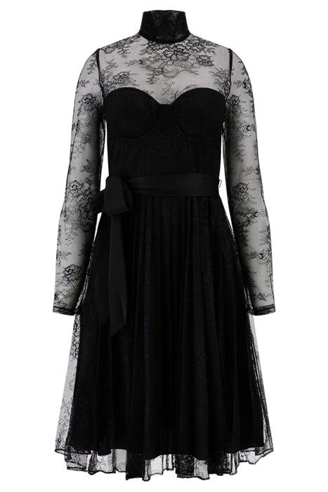 Chic, versatile, and undeniably stylish—the Mei Lace Dress Jet Black is your go-to for elevating any look.