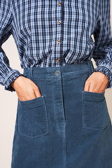 Add a touch of effortless charm to your ensemble with the Melody Cord Skirt Blue, tailored for a seamless fit and sleek design.