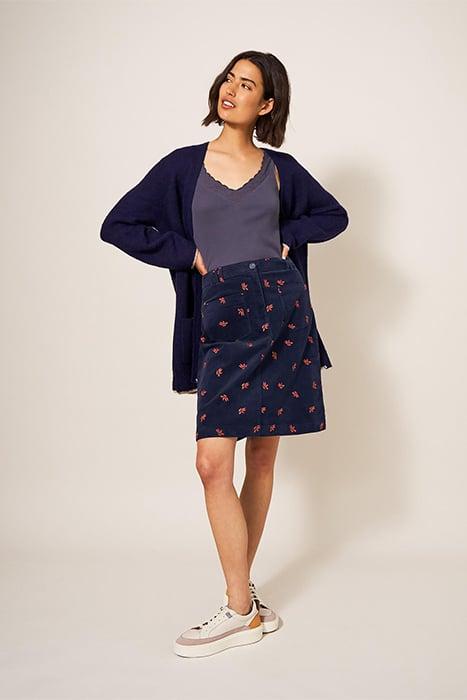 MELODY EMBROIDERED CORD SKIRT NAVY