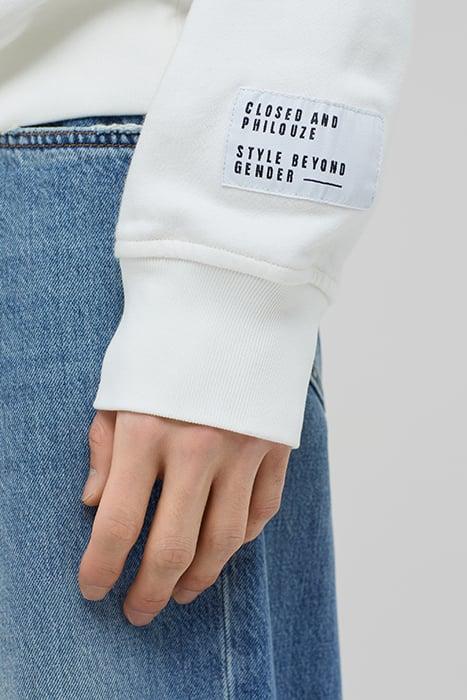 MEN M. PHILOUZE UNISEX HOODIE WHITE by Closed is a celebration of refined tailoring. Imbued with Closed’s renowned dedication to quality and sustainability, this piece blends functionality with style, making it an essential addition to your wardrobe.