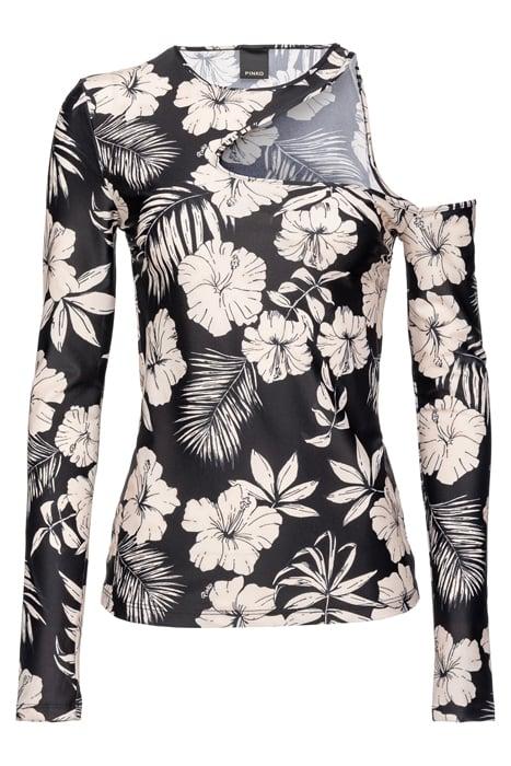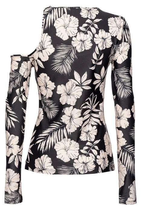Slim-Fitting, Long-Sleeved Top In Technical Stretch Jersey Fabric, With Graphic Black And White Floral Print. Round Neck With Cut-Out Effect At The Side, Which Leaves One Shoulder Open. - Model Is 175Cm Tall And Wears A Size 40.