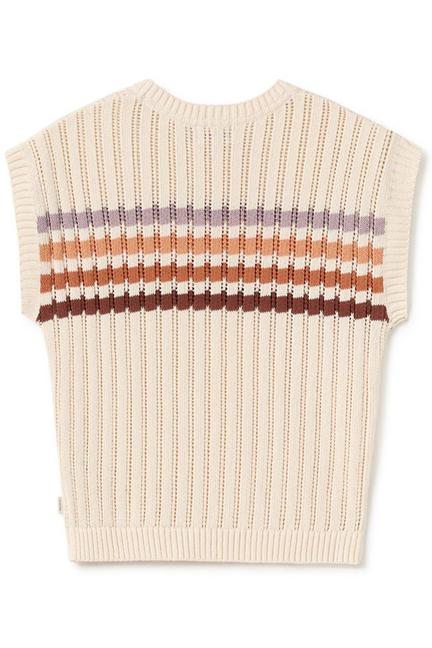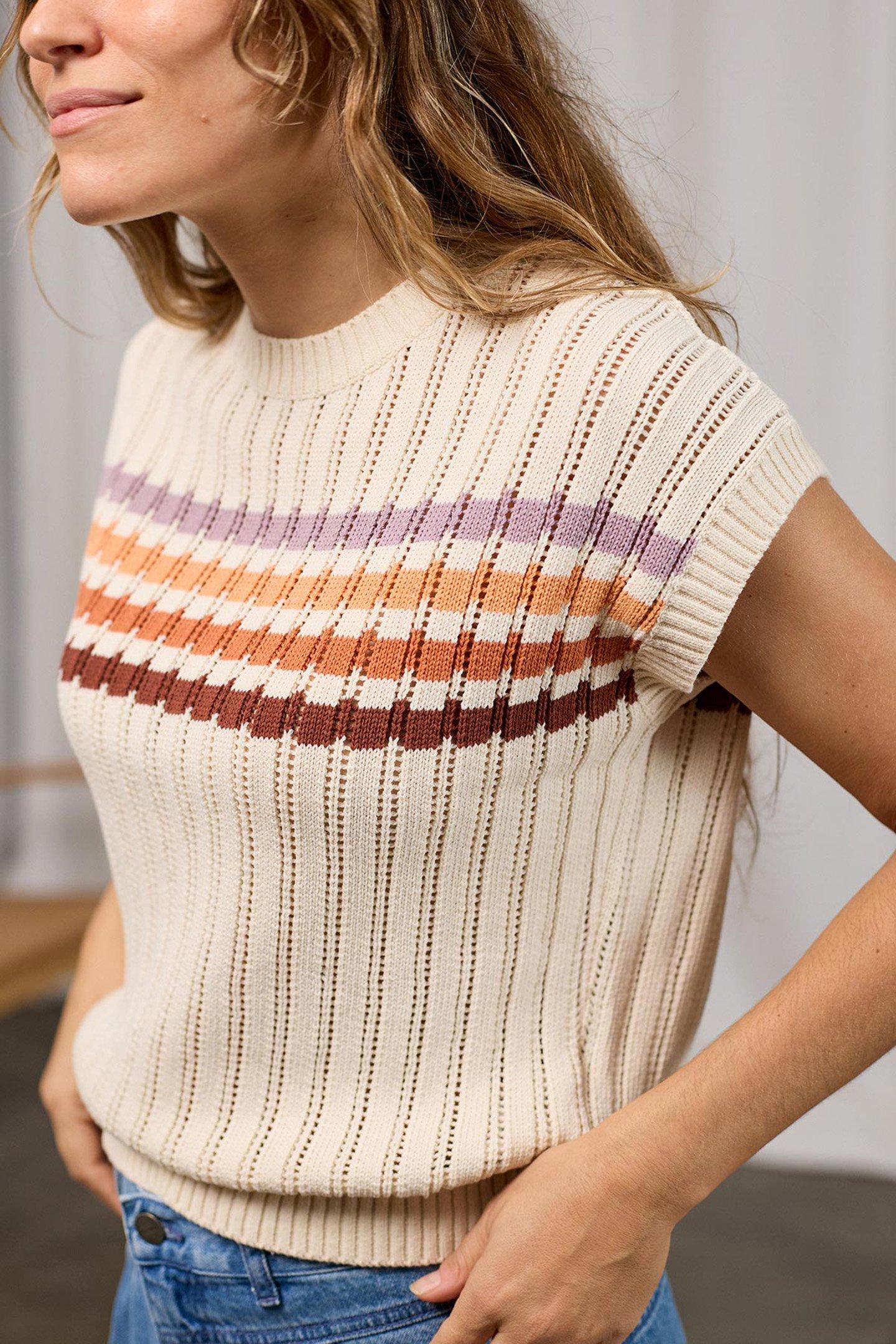 Boasting An Openwork Knit Design, Capped Sleeves And Beautiful Stripes, The Motutapu Is A Piece That Can Be Paired Effortlessly With Almost Any Sustainable Short, Trouser Or Skirt.