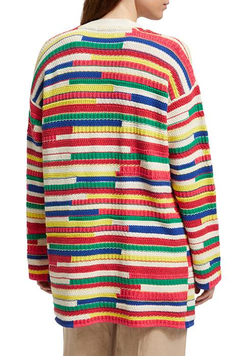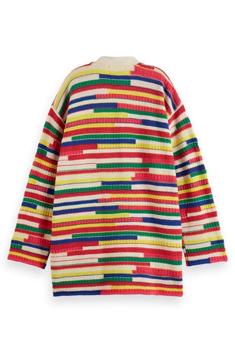 MULTICOLOURED INTARSIA KNITTED CARDIGAN MULTI STRIPE