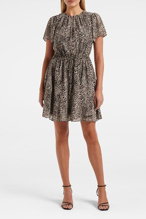 NAHLA FLUTTER SLEEVE MINI SEPIA LEOPARD