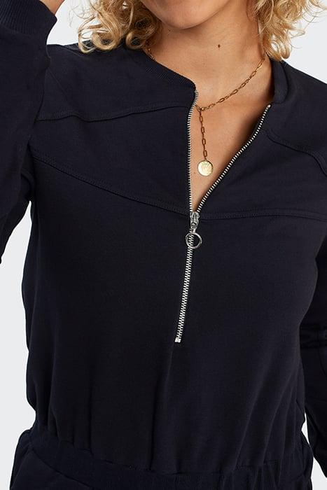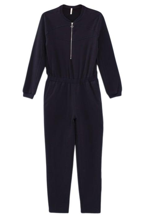NAVY SWEATSHIRT FABRIC ZIPPED JUMPSUIT