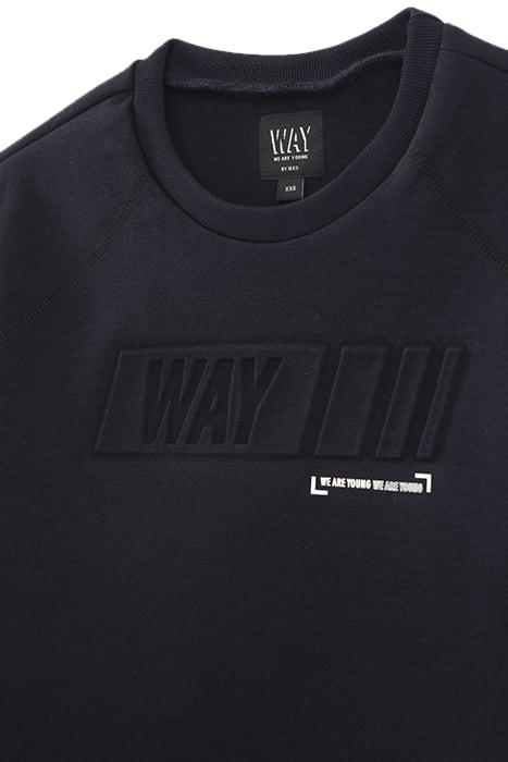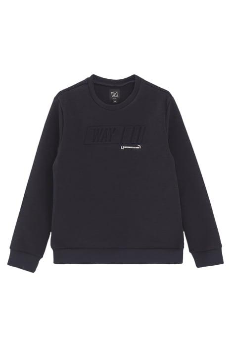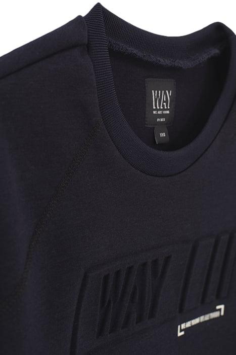 NAVY SWEATSHIRT WITH EMBOSSED SLOGAN