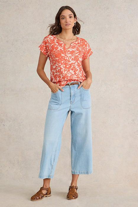 NELLY NOTCH NECK TEE ORANGE PRINTED