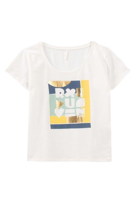 Women’S Off-White T-Shirt Round Neck, Short Sleeves Arty Slogan Image With Foil Details On Front