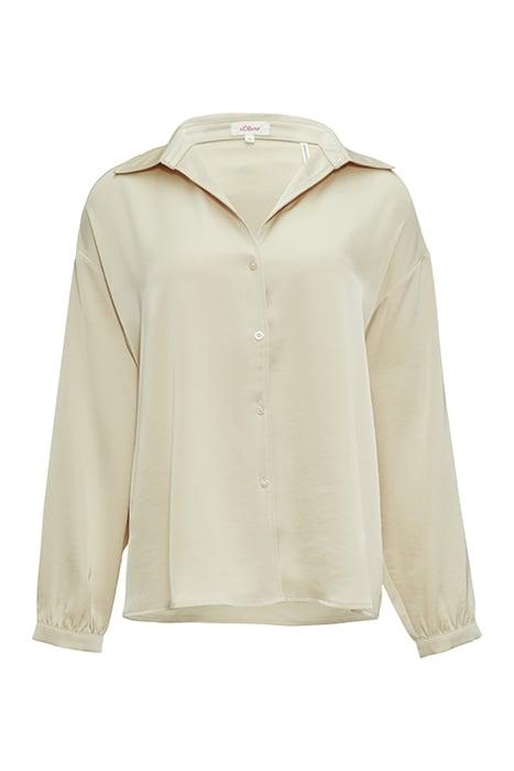 Closure: button placket; Collar: shirt collar; Details: gathered gathering; Fabric: satin; Fit Overall: relaxed fit; Material: polyester; Pattern: plain; Quality: flowing; Sleeve: long sleeves, dropped shoulders, cuffs