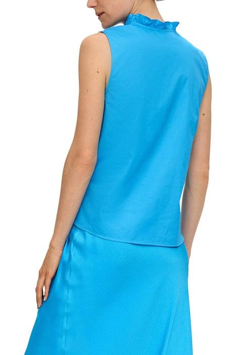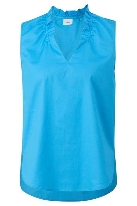 Details: Pleats, Feature: High-End, Occasion: Casual, Neckline: V-Neck, Collar: Ruffle Collar, Stand-Up Collar, Material: Cotton, Sleeves: Sleeveless, Fit: Regular Fit, Style: Fashionable, Fabric: Poplin, Hem: Hem With Side Slits, Rounded Hem.