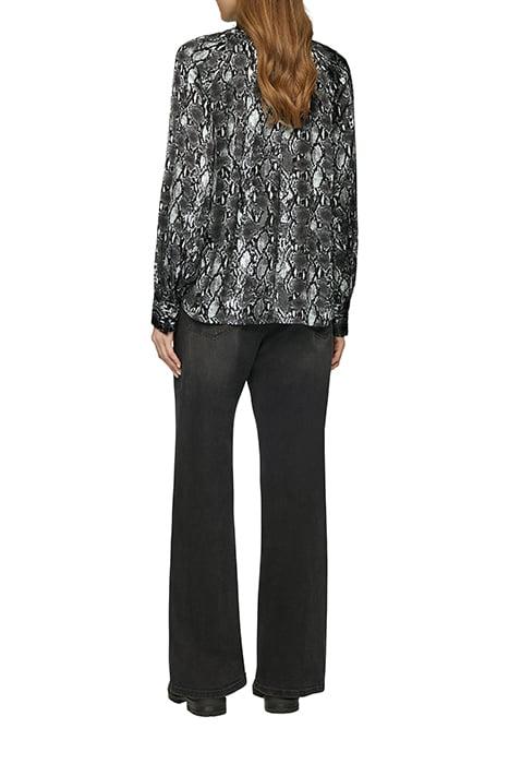 Back part: elongated back hem; Details: gathered gathering; Fabric: satin; Fit Overall: relaxed fit; Hem: rounded hem; Material: viscose; Neckline: v neckline; Occasion: casual; Pattern: plain; Print: all over print; Quality: flowing; Sleeve: cuffs, raglan sleeves, long sleeves
