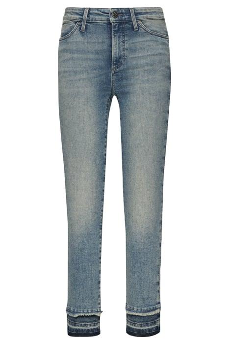 Jeans: Waist: With Belt Loops, Waist Height: Mid Rise, Leg Length: Cropped, Trouser Style: Skinny Fit, Feature: Elastic, Leg: Skinny Leg, Closure: Button, Zipper, Fabric: Denim, Pocket: 5-Pocket Model, Hem: Frayed Hem.