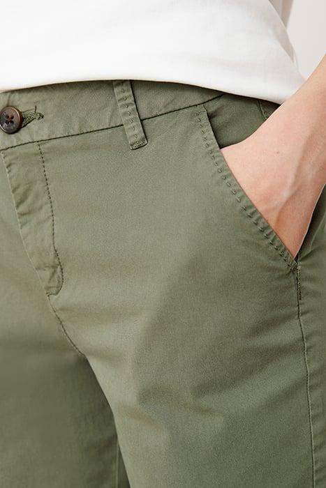 Chino: Band: Met riemlussen, Beenlengte: Ankle, Broekmodel: Slim fit, Eigenschap: Elastisch, Finish: Garment dye, Gelegenheid: Casual, Pijpen: Slim leg, Sluiting: Knoop, Ritssluiting, Stijl: Minimalistisch, Stof: Katoen-stretch, Zak: Achterzak, Omboorde zak.