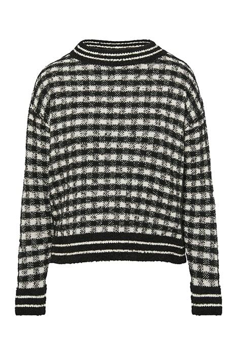 Details: Ribbed Collar, Striped Detail, Occasion: Casual, Business, Neckline: Round Neck, Look: Two-Tone, Material: Cotton Mix, Viscose Mix, Wool Mix, Pattern: Checked, Sleeves: Oversized Shoulders, Long Sleeves, Fit: Regular Fit, Fabric: Jacquard , Knitwear.