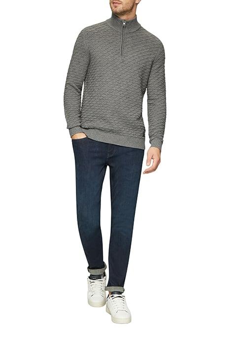 Details: Ribbed Edge, Feature: Structured, Occasion: Casual, Collar: Stand-Up Collar, Material: Cotton, Sleeves: Long Sleeves, Fit: Regular Fit, Closure: Zipper, Fabric: Knitwear.