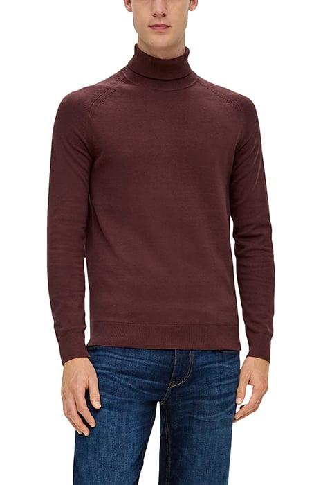 Knitted Sweater Made Of Cotton, Plain, Polo Neck, Long Sleeves|Raglan Sleeves|Ribbed Cuffs