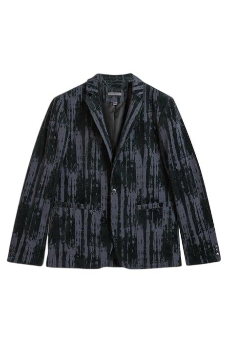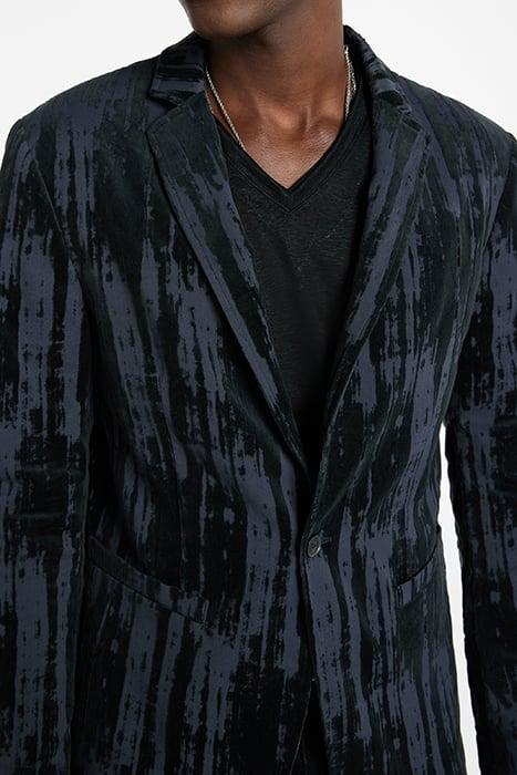 Infused With The Essence Of Italian Sartorial Excellence, Our Willett Jacket Is Crafted From Sumptuous Velvet Fabric. An Intricate Abstract Burnout Pattern, Brought To Life Through The Traditional Cylinder Method, Graces Its Surface, Offering A Tactile Three-Dimensional Texture. Designed With A Slim Silhouette, One-Button Closure, And Sleek Skinny Notch Lapel, This Jacket Stands As The Epitome Of Refined Sophistication.