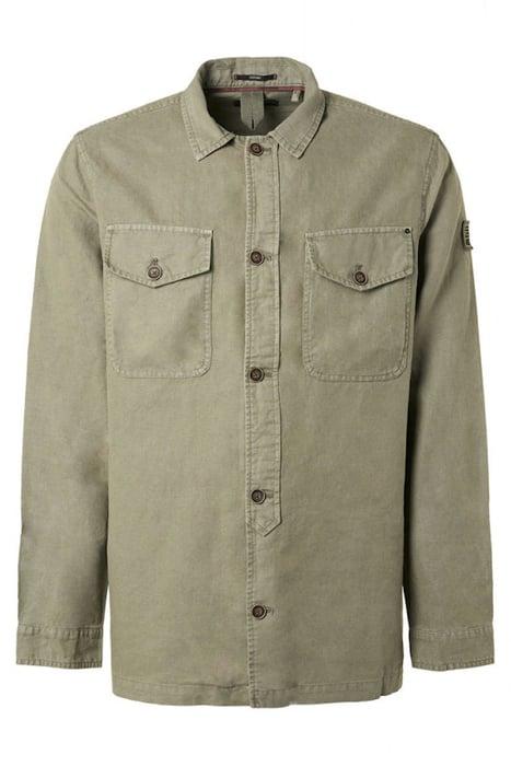 OVERSHIRT BUTTON CLOSURE GARMENT DYED WITH LINEN SMOKE GREEN
