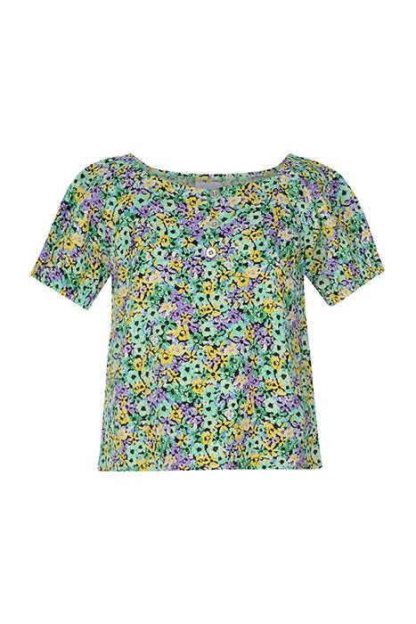 Going Wild(Flower)! De Paradise Top Heeft Korte Pofmouwen, Een Rechte Fit En Een Ronde Hals. Verder Wordt De Top Gekenmerkt Door De Vrolijke Bloemenprint En De Zilverkleurige Sierknoopjes. Combineer De Top Op Een Skinny Jeans En Je Kleine Meid Is Klaar Voor Dag!