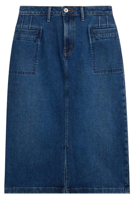 The Penny Denim Midi Skirt Mid Denim delivers unparalleled style, ensuring you look polished from day to night.