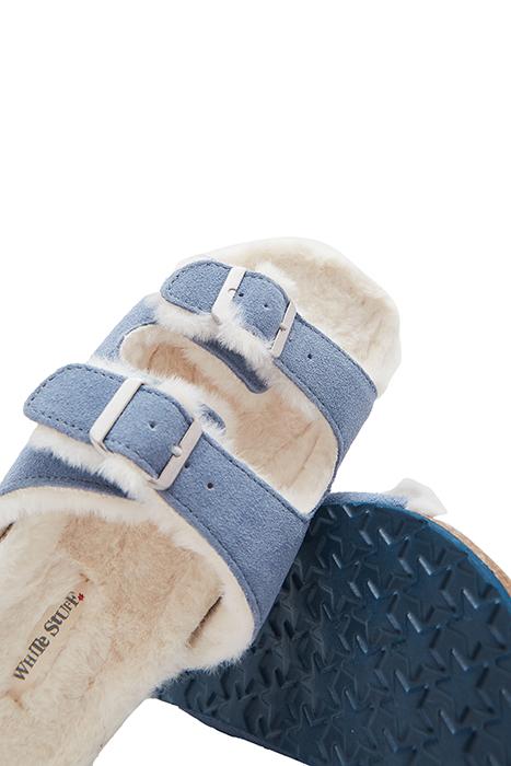 Step into effortless sophistication with the Phoebe Suede Footbed Blue, a piece designed to complement any modern wardrobe.