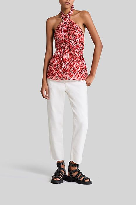 POPPY RED BACKLESS TOP WITH CHECK PRINT
