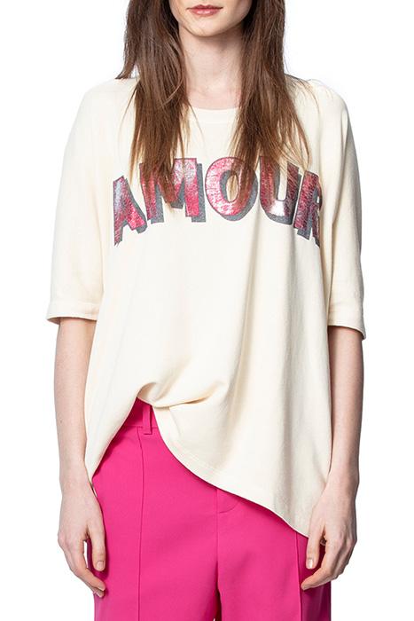 Zadig&Voltaire women’s ecru T-shirt, short sleeves, “AMOUR” printed on the front.