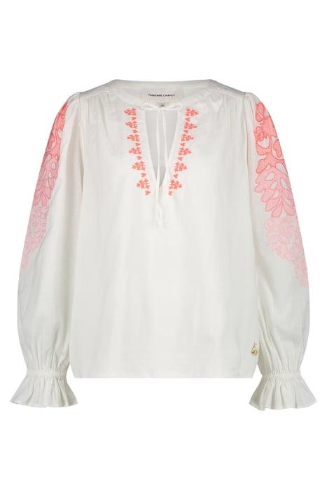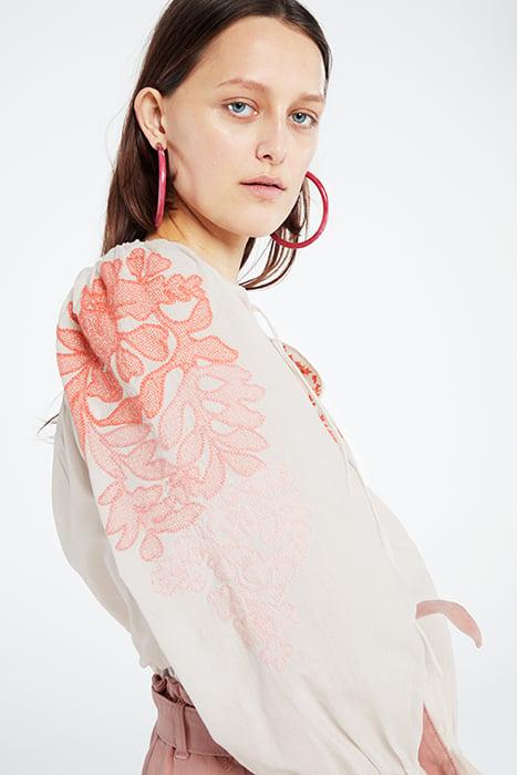 V-Neck Top With Bow Detail. Praia Top Has Embroidered Details Along The Neckline And Sleeves.
