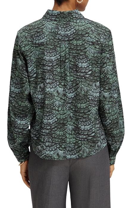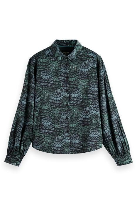 PRINTED BALLOON SLEEVE SHIRT FEATHER BOTTLE GREEN