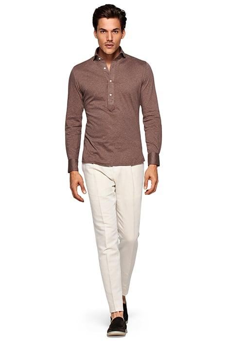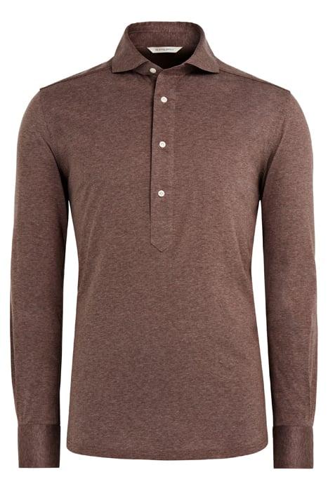 • This knitted brown popover is tailored to an extra slim fit from soft Egyptian cotton jersey by Tessilmaglia, and features a curved cutaway collar.