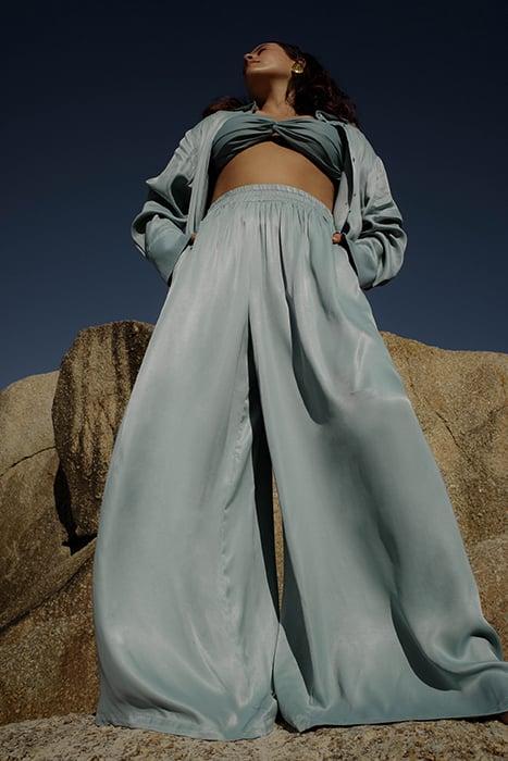 The Viveh Quartz Trousers Have A High Smocked Elasticated Waistband And Are Full Length. Cut To A Straight Silhouette, The Quartz Trousers Have A Wide Leg And Two Front Pockets.