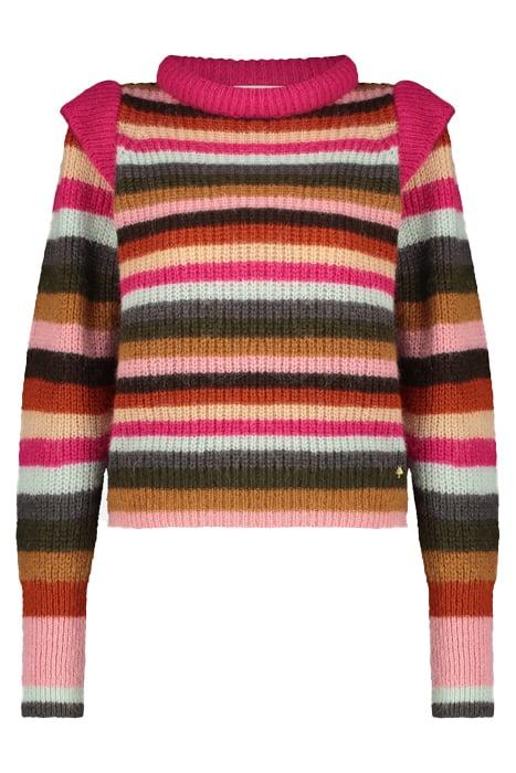 Fine Knitted, Multicolored Pullover With A Round Neckline And Raised Shoulders. Rainbow Pullover Has Balloon Sleeves And Fitted Cuffs.