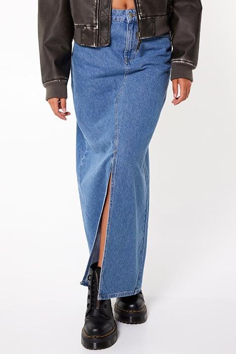 America Today Women'S Skirt. The Raxid Is A Maxi Skirt Made From A Cotton Fabric In A Denim Look. The Skirt Features Two Front Slit Pockets And Two Back Pockets.
