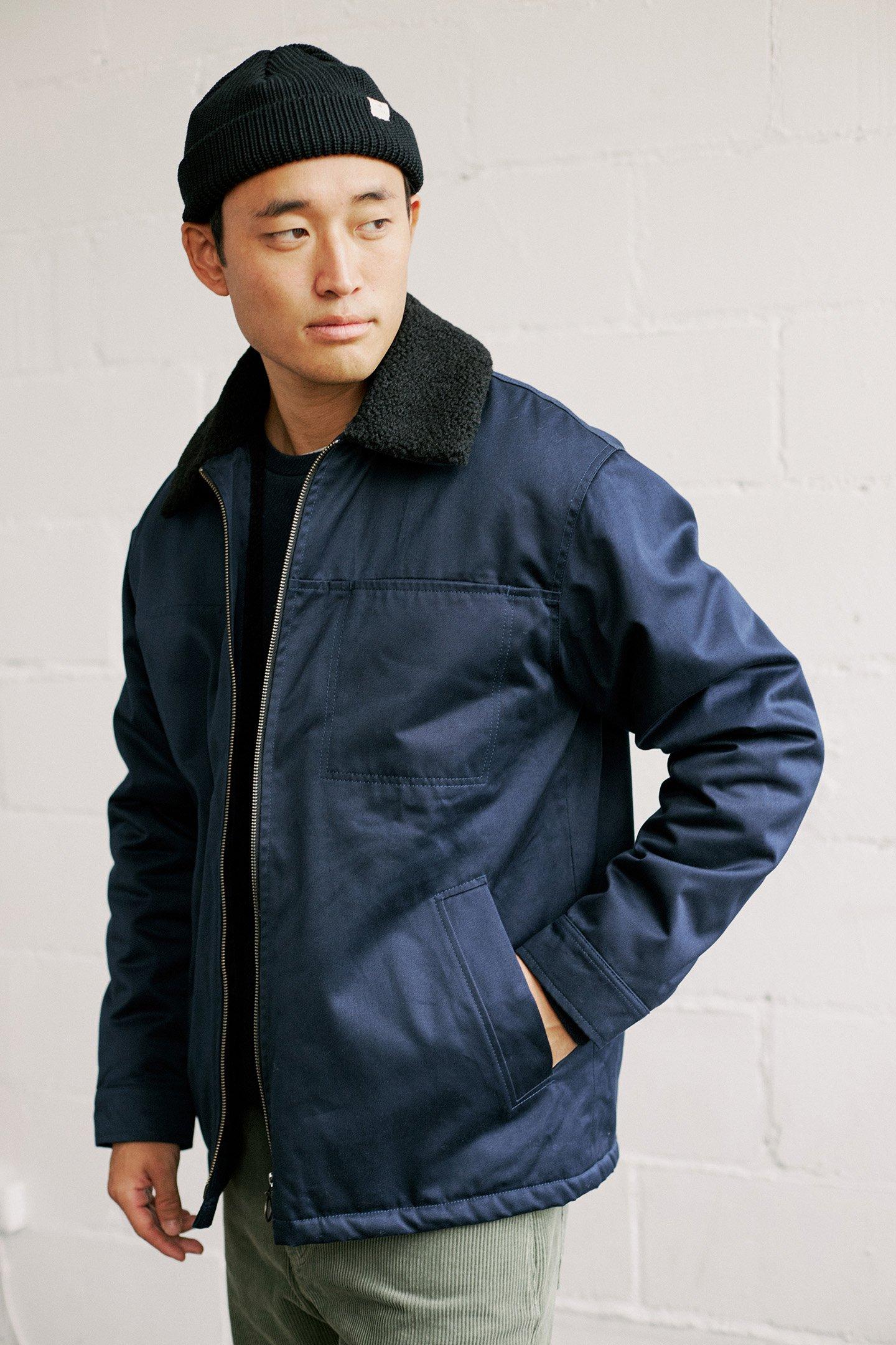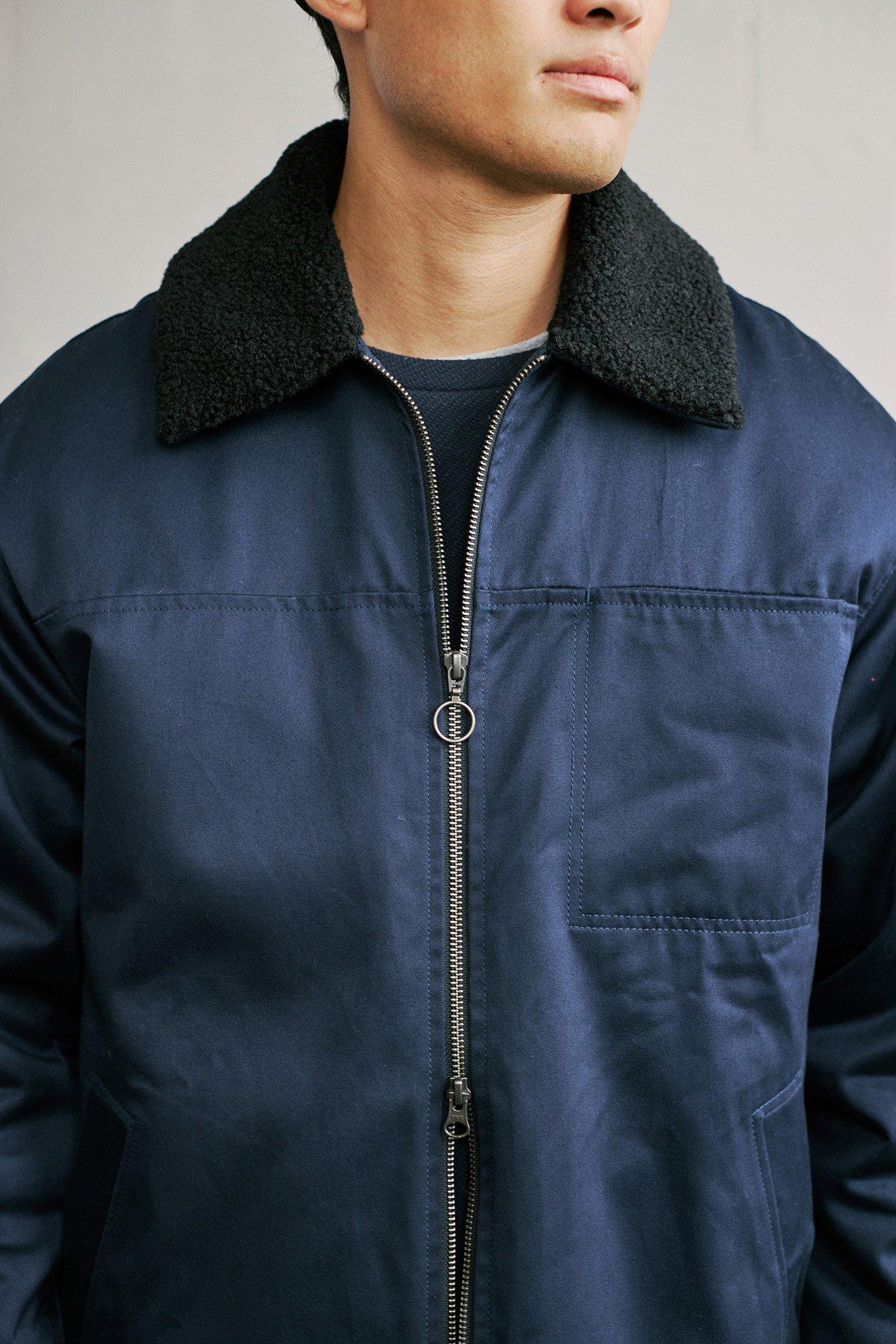 For Mild Conditions, This Classic Men’S Jacket Is Elevated By A Sherpa Effect Collar. With Dropped Shoulders, Lightly Padded Sleeves, Black Sherpa Lining And Three Snap Button Pockets.