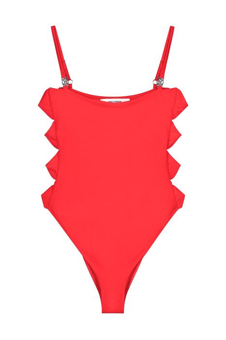 Score instant style points this summer with our swimsuit. In an eye-catching lifeguard red hue with twisted side strap details, it feels more deconstructed high-fashion swimwear and less Baywatch. The shoulder straps are attached and adjusted using 'DP' branded metal buckles, whilst a silicon edging runs along the chest seam to provide a more secure fit. Made from a quick-drying synthetic for added comfort.
