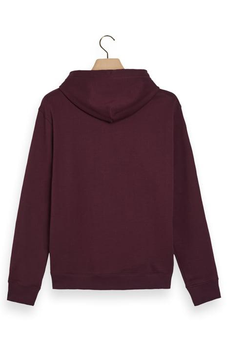 REGULAR FIT ESSENTIAL BADGE HOODIE IN ORGANIC COTTON BERRY W