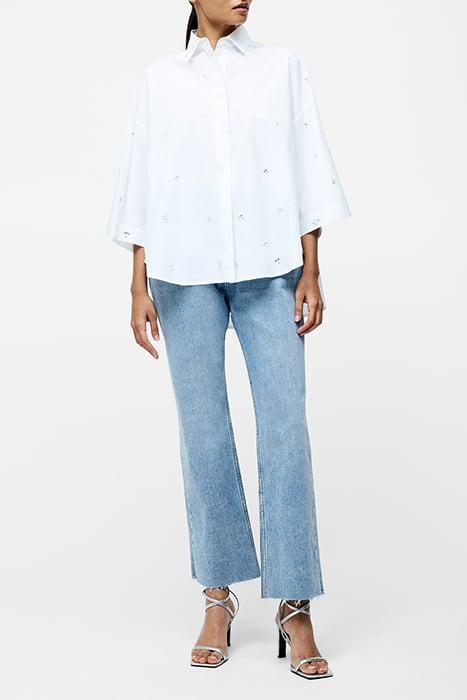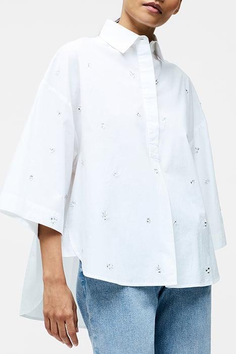 RHINESTONE POPLIN POPOVER SHIRT LINEN WHITE