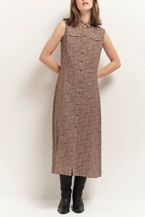ROXY - LONG SAND SHIRT DRESS WITH MINI GIRAFFE PRINT
