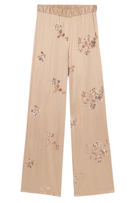SATIN TROUSERS WITH SEQUIN EMBROIDERY BEIGE