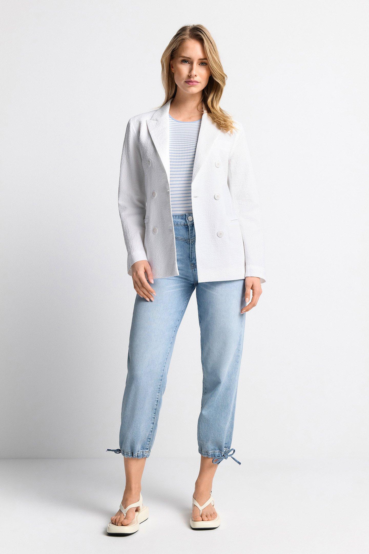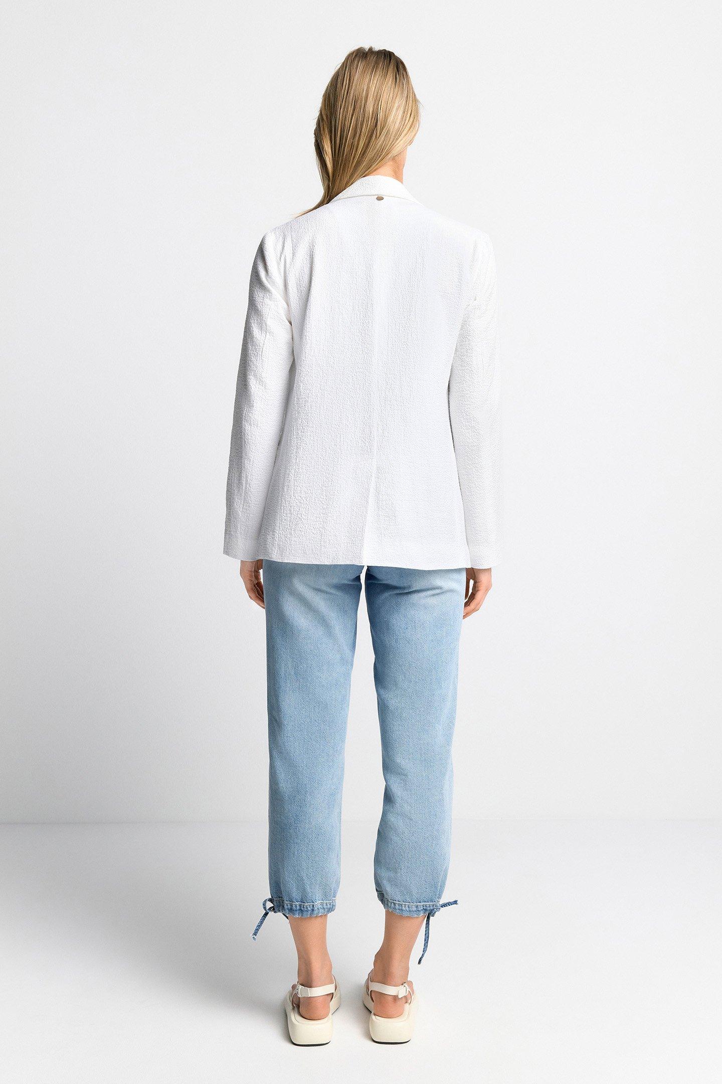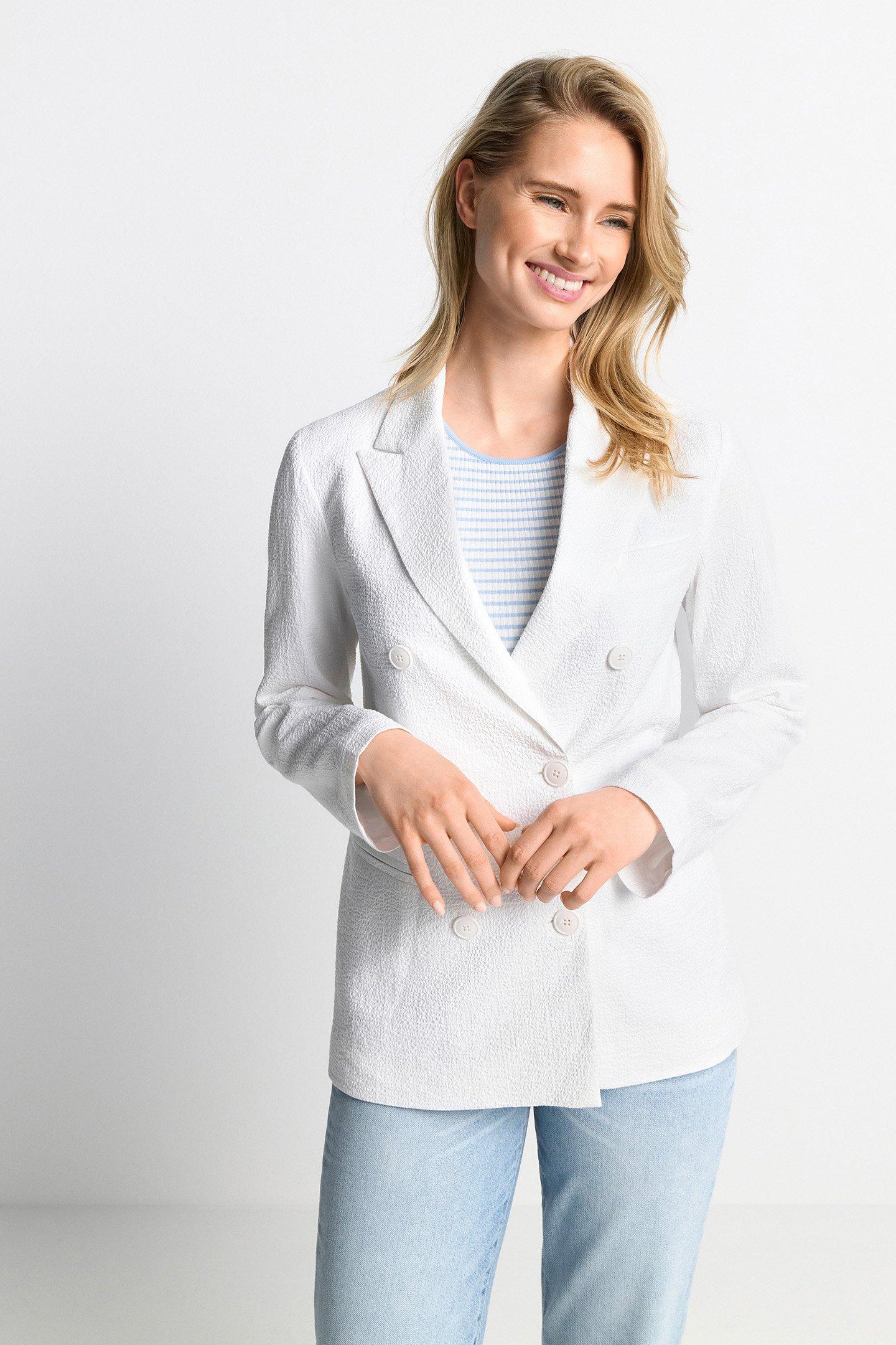 SEERSUCKER DOUBLE BREASTED BLAZER ORGANIC WHITE