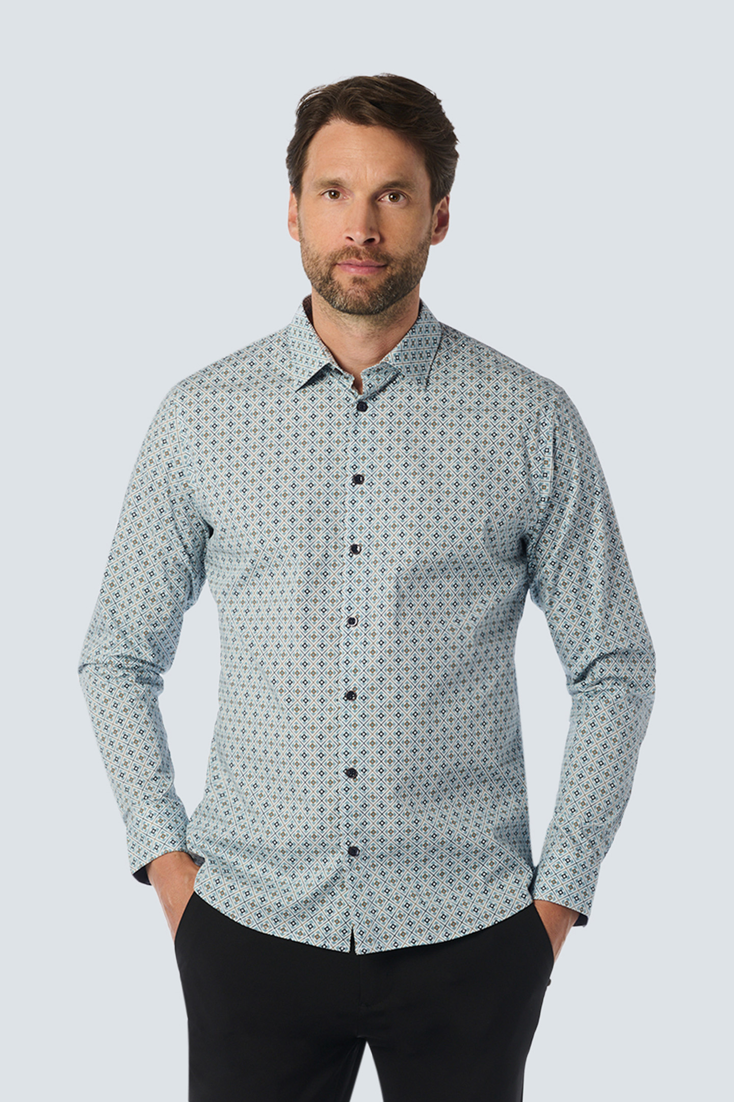 Elevate Your Casual Wardrobe With The No Excess Stretch Allover Printed Shirt! This Long-Sleeve Shirt Features A Vibrant Allover Print That Adds A Fun Twist To Your Everyday Style. Made With Stretchy Fabric For Ultimate Comfort, It’S Perfect For Those Laid-Back Days Or A Night Out. Pair It With Jeans Or Chinos For A Effortlessly Cool Look!