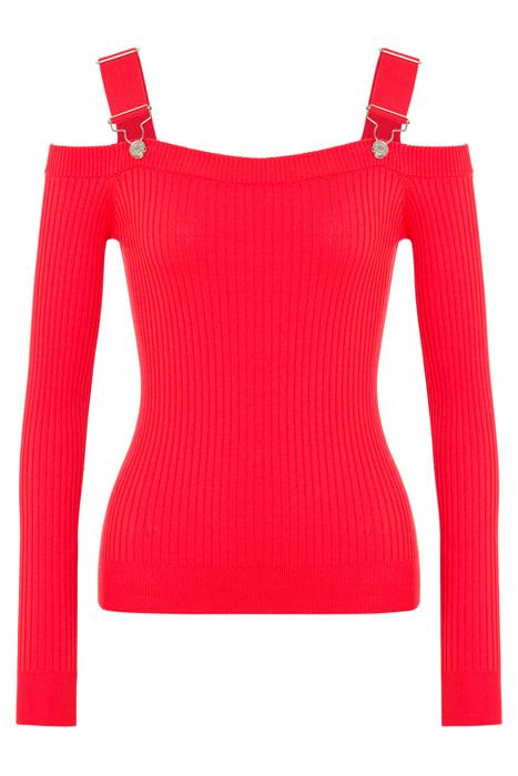 Off-The-Shoulder Sweater In Stretch Viscose With Braces And Ribbed Workmanship.