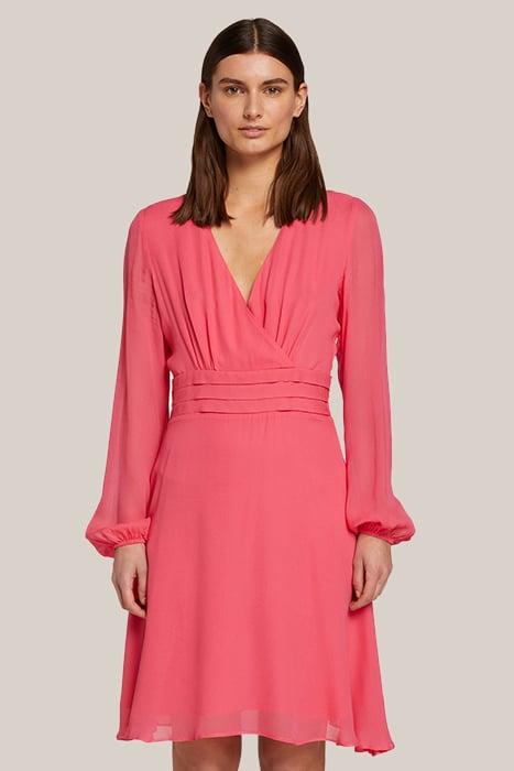 Short Georgette Dress; Plunging Front V-Neck, Concealed Zip Opening In The Centre Back; Long Sleeves With Elastic Cuffs, Tone-On-Tone Sash At The Waist