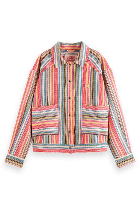 SHORT TRUCKER JACKET IN MULTI COLOUR STRIPE VIBRANT STRIPE